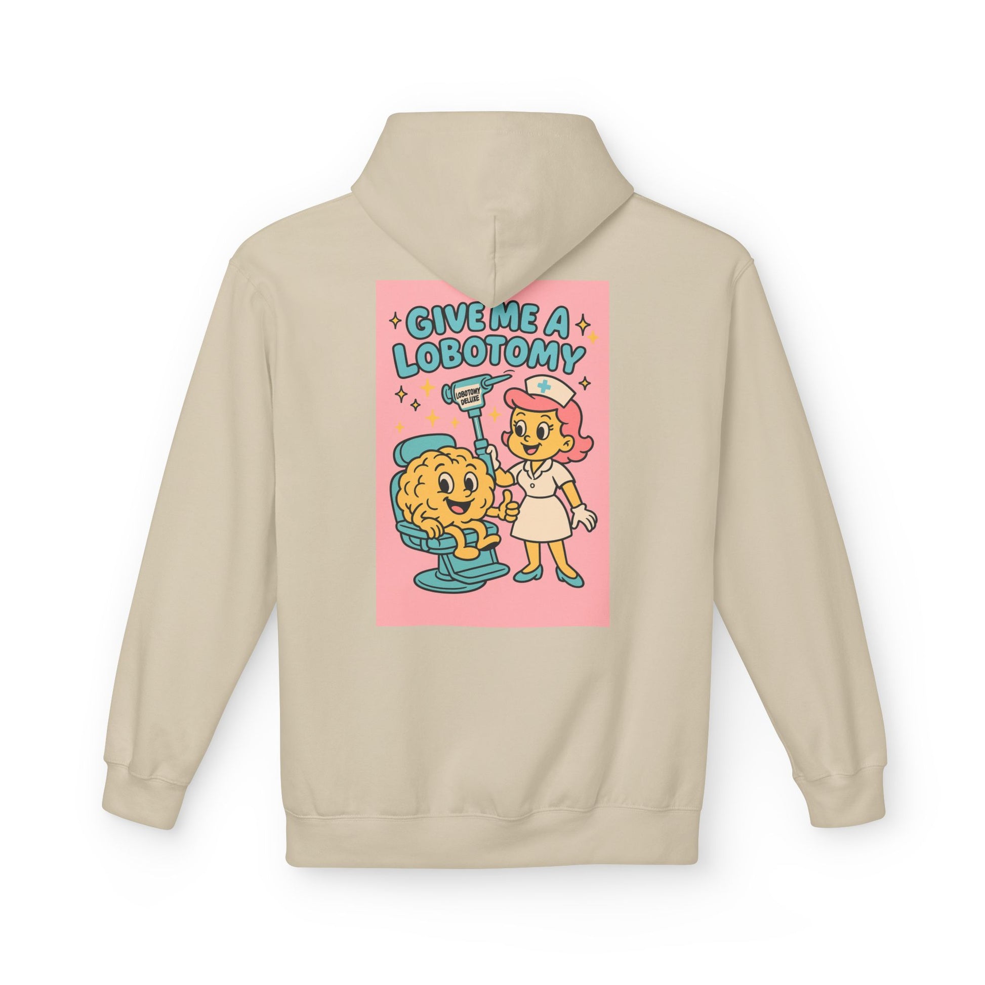 Hoodie — 'Give Me a Lobotomy' Retro Nurse Brain Graphic Pullover