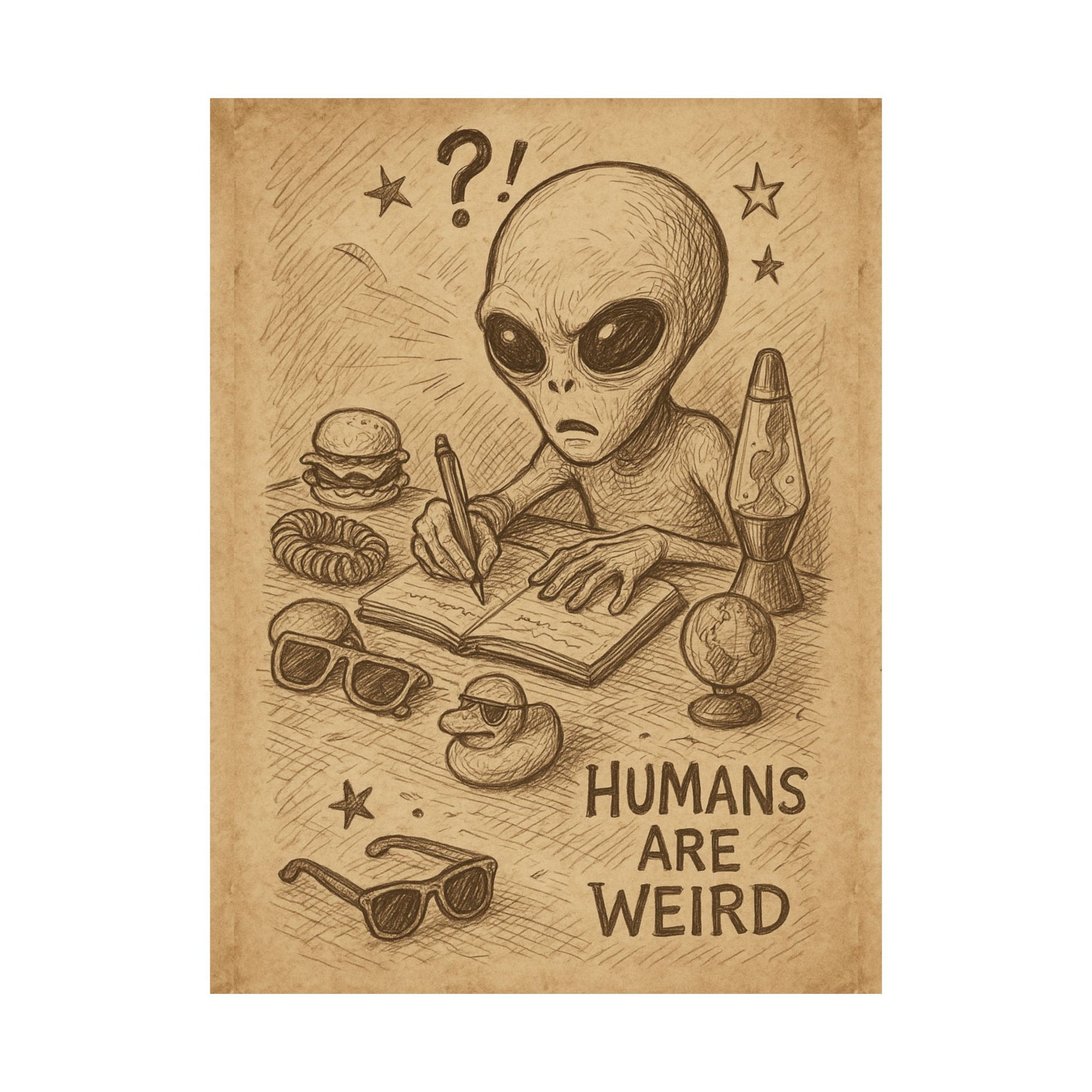 Humans Are Weird Matte Vertical Poster — Alien Illustration Art Print